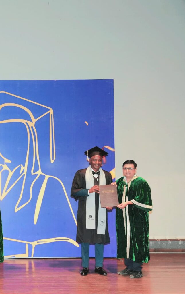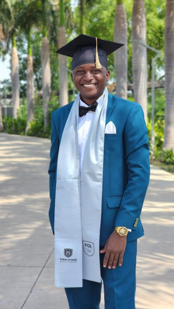 Henry finished high school with a strong B- grade, but his ambition didn’t stop there. He was determined to pursue higher education. When he received offers from both We Care4 and the Study in India Scholarship Program, he made the bold choice to study law at Marwadi University in Gujarat, India.